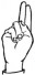 На ћирилици написано БОГИЊА ОБРАДОВИЋ састоји се из 15 слова [?]. Исписано ћириличном једноручном азбуком за глувонеме: